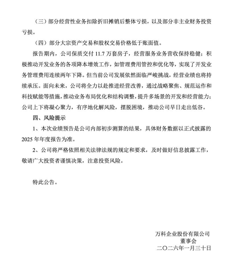 1月30日十大线上实盘配资,万科企业股份有限公司(以下简称“万科”)发布“2025年度业绩预告”。